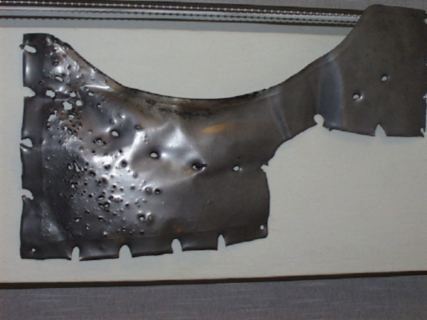 | Global look on area dedicated to the Giles crew. Note the pilot side window frame and the flak west piece over the showcase | Detail of the showcase with various pieces of the personal equipment and instruments | Manifold presure gauge detail | Piece from the tail turret compartment |